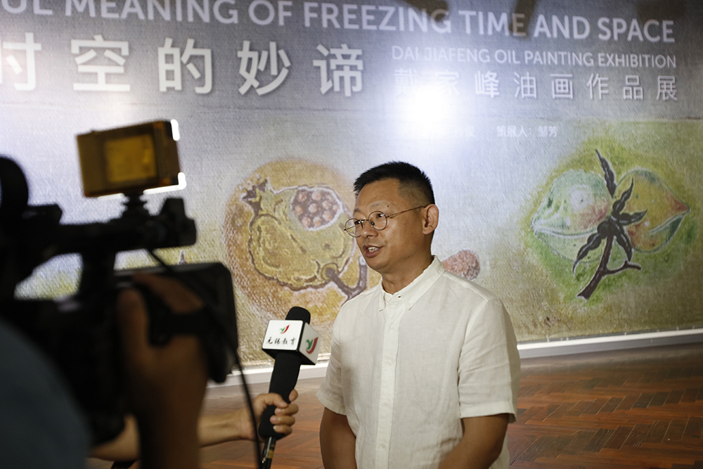本次展覽的策展人、鳳凰藝都美術(shù)館館長鄒芳女士對給予畫展大力支持的江蘇省油畫學(xué)會、蘇州大學(xué)藝術(shù)學(xué)院、蘇州大學(xué)美術(shù)創(chuàng)作中心等單位表示感謝,同時向本次展覽的指導(dǎo)單位中共無錫市委宣傳部、無錫市文化廣電和旅游局、無錫市文學(xué)藝術(shù)界聯(lián)合會等單位致以崇高的敬意。她盛贊戴家峰先生是一位令人尊敬的美術(shù)教育家,也是一位充滿哲思的畫家。他擅長將日常生活中的人物、瓜果、風(fēng)景等通過繪畫這一媒介上升至哲學(xué)層面,乃至進入“定格時空的妙諦”,讓繪畫與哲思都達到一個全新的高度。相信這些充滿禪意的作品會像格調(diào)雋永的樂曲一樣令人難忘。