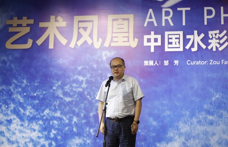 開幕式上,陳衛(wèi)宏董事長代表江蘇鳳凰畫材科技股份有限公司、鳳凰藝都美術館,對給予本次畫展大力支持的中國美術家協(xié)會水彩藝委會、江蘇省美術家協(xié)會水彩·粉畫藝委會等單位致以衷心的感謝,并對參展作品給予了高度評價:展出的60多幅作品,既有色彩厚重、氣勢恢宏的大手筆,也有色彩明麗、輕快活潑的小品畫;既有纖毫畢現(xiàn)的具象寫實,也有空靈飄渺的抽象藝術,這些作品集中反映了當代中國水彩畫的整體風貌,展現(xiàn)出朝氣蓬勃的時代精神和文化自信。這些風格多樣的作品,是對偉大時代的謳歌,對建黨百年華誕的獻禮。