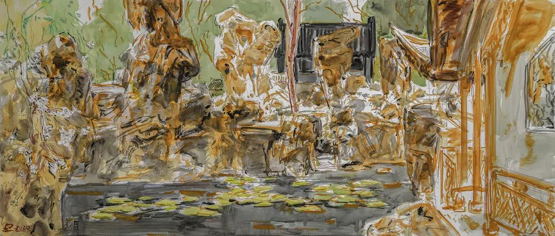 《越過悲傷的彼岸》應金飛 紙本水彩 153x105cm 2020年