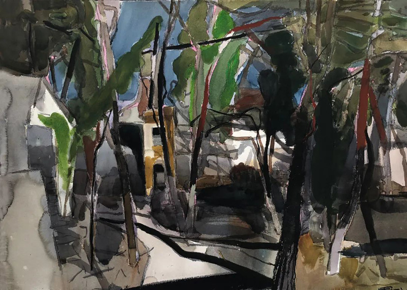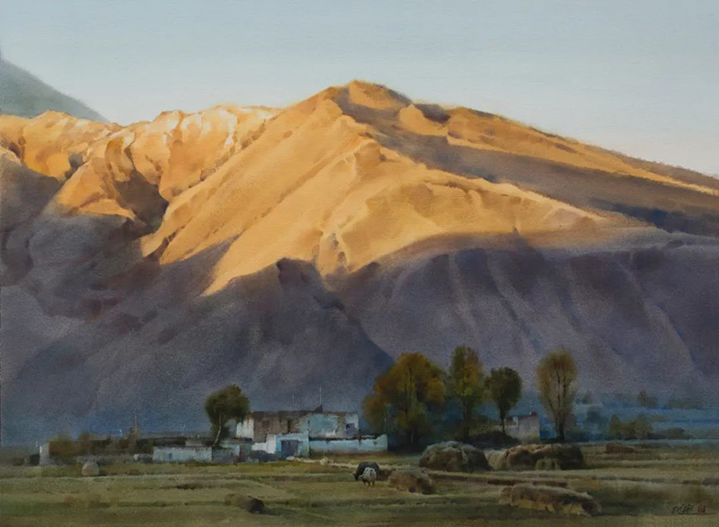 《山西高平郭家莊風景》周剛 紙本水彩 75x105cm 2018年