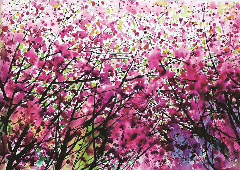 《綻放》丁寺鐘 紙本水彩 78×109cm 2021年