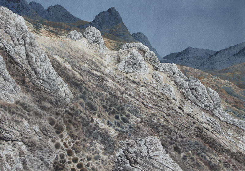 《亂云飛渡之三》陸慶龍 紙本色粉 77cmx56cm 2018年