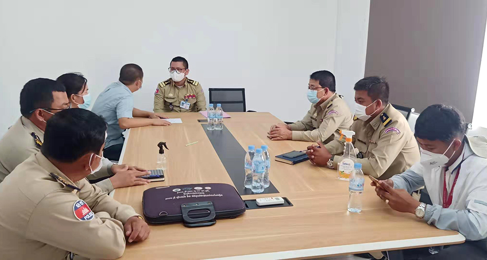 2021年7月27日上午,柬埔寨柴楨省公安廳廳長助理到訪柬埔寨鳳凰畫材公司檢查防疫工作