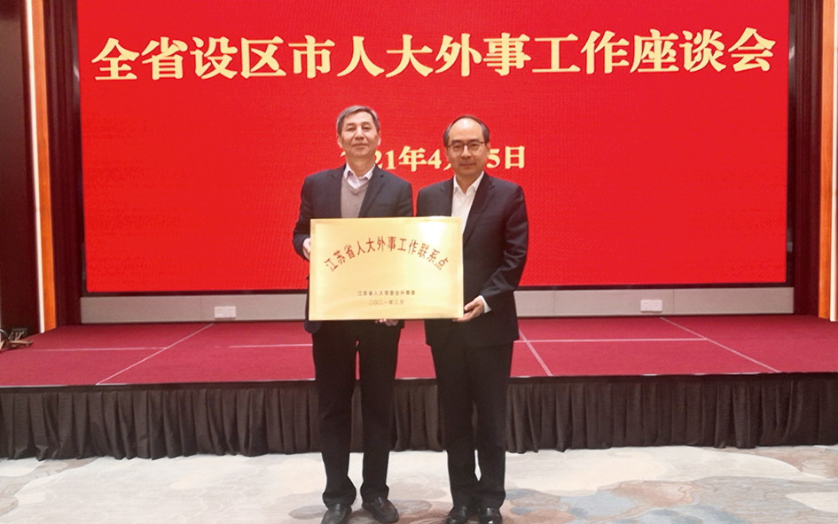 2021年4月15日,江蘇省設區(qū)市人大外事工作座談會在常熟市舉行,會上授予十三家單位“首批江蘇省人大外事工作聯(lián)系點”,其中,江蘇鳳凰畫材科技股份有限公司作為無錫市唯一入選單位,成為首批江蘇省人大外事工作聯(lián)系點之一,鳳凰畫材黨支部副書記、行政人事副總監(jiān)袁成波同志上臺接受授牌。