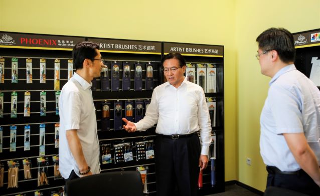 黃欽書記表示:今年是實(shí)行創(chuàng)業(yè)板注冊(cè)制第一年,這對(duì)于企業(yè)上市是很好的機(jī)會(huì),希望鳳凰順利乘上上市東風(fēng)!無錫能夠獲評(píng)國(guó)家文化出口基地,其中鳳凰畫材等企業(yè)是很重要的亮點(diǎn),希望作出更好的成績(jī)!
