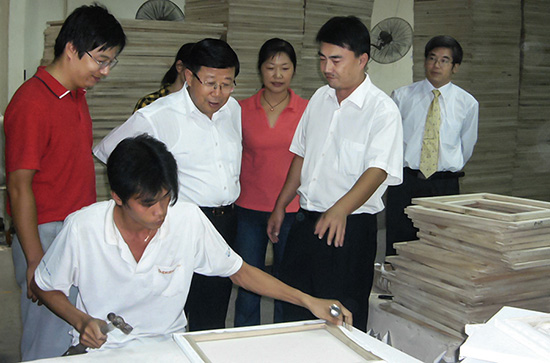 2013年9月,全國人大副委員長、中國紅十字會會長華建敏(中)等一行在集團董事長、總經(jīng)理陳衛(wèi)宏(左),集團董事、鳳凰藝都美術(shù)館館長鄒芳(右)的陪同下參觀考察鳳凰藝都美術(shù)館。
