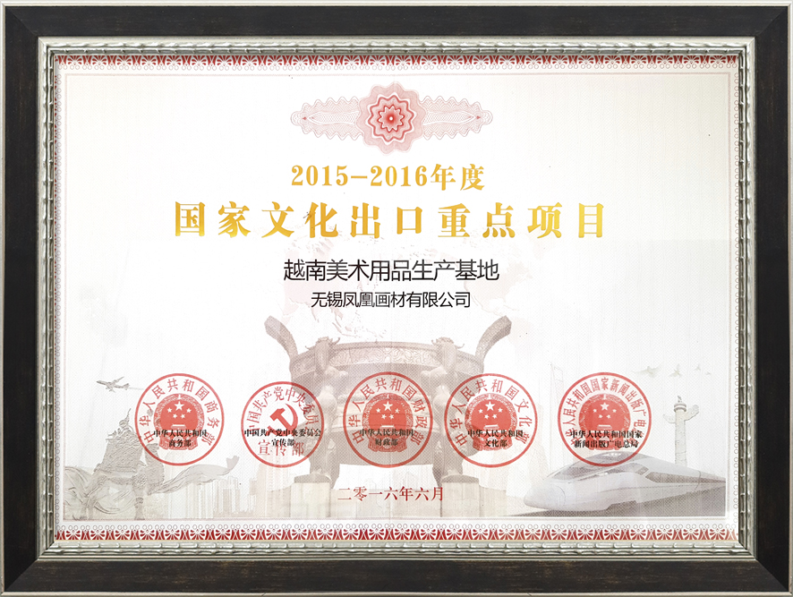 越南鳳凰畫材獲評(píng)2015~2016年度國家文化出口重點(diǎn)項(xiàng)目。