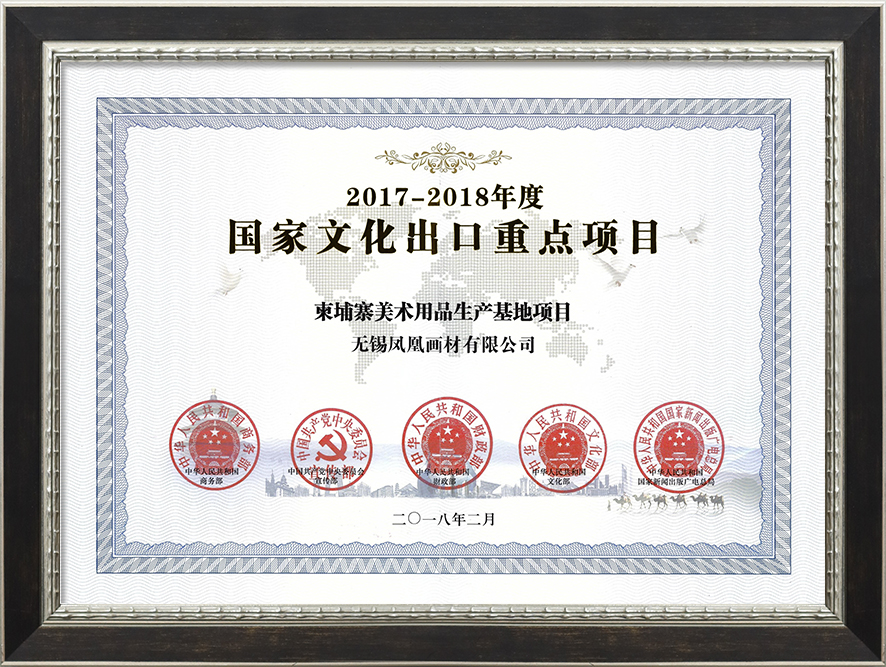 柬埔寨鳳凰畫材獲評(píng)2017~2018年度國家文化出口重點(diǎn)項(xiàng)目。
