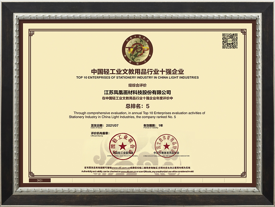 鳳凰畫材獲評(píng)中國輕工業(yè)文教用品行業(yè)十強(qiáng)。