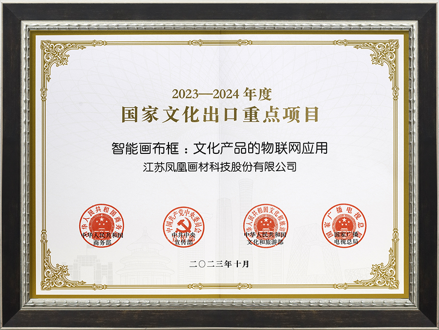 納米畫布首次通過國家科技成果鑒定,智能畫框獲評(píng)2023~2024年度國家文化出口重點(diǎn)項(xiàng)目。