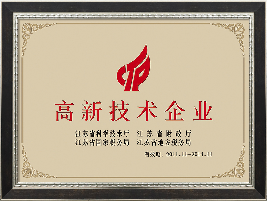 公司榮獲"江蘇省高新技術(shù)企業(yè)";